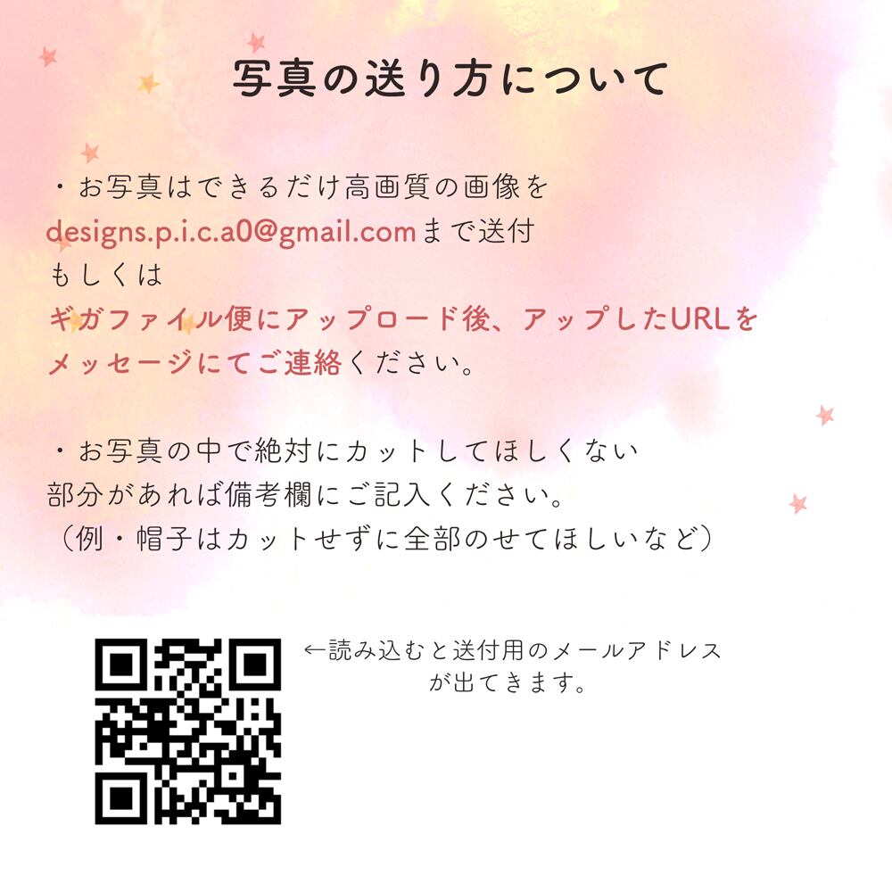 ①お支払い後、商品説明画像内にあるQRコードから記載内容をオーダーをし、必要画像を送付ください。