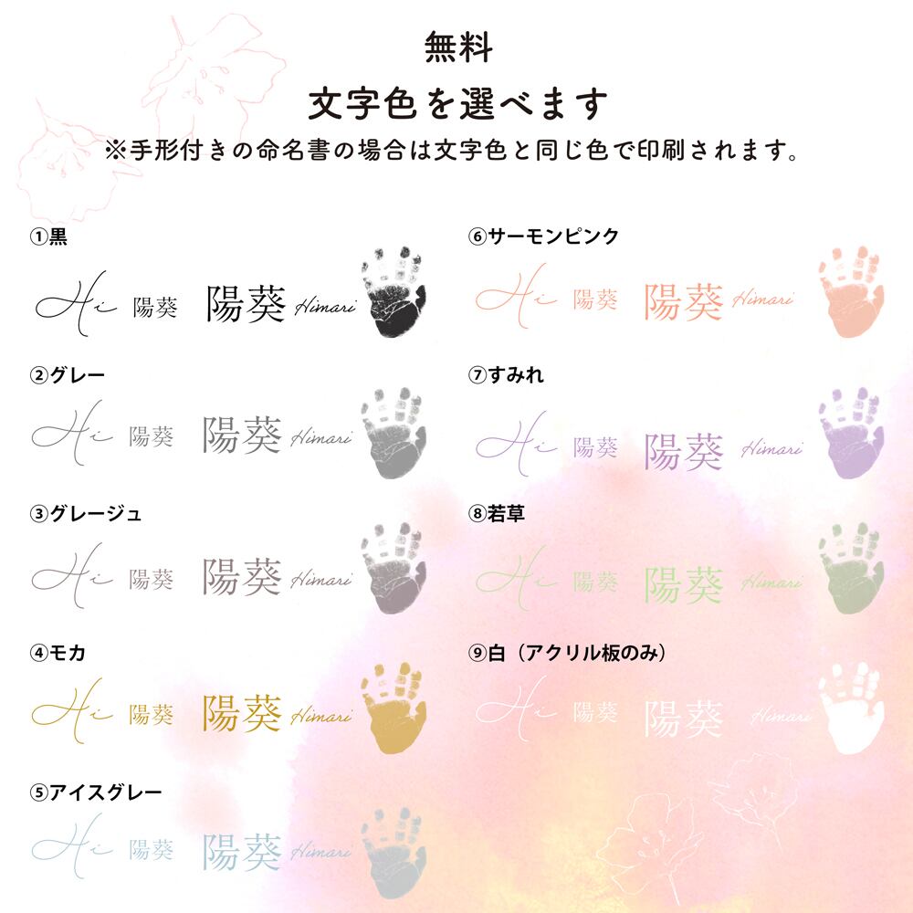 他にも命名書・ご出産後の行事やご報告にも同じ雰囲気で揃えられる作品
