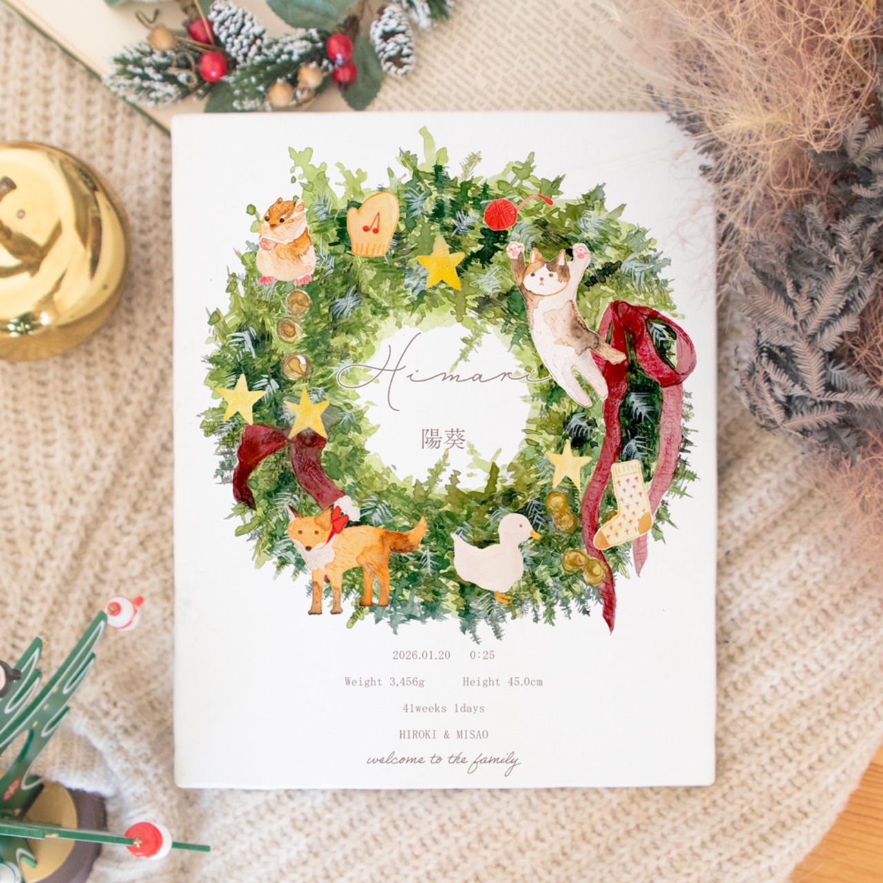 他にも命名書・ご出産後の行事やご報告にも同じ雰囲気で揃えられる作品