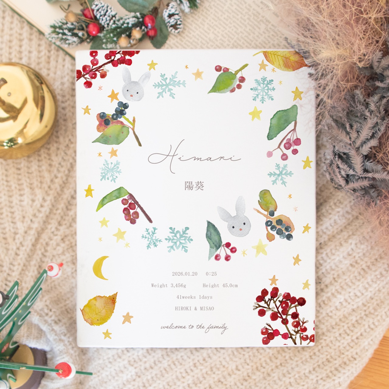 命名紙 命名ポスター ベビー マンスリーカード ハーフバースデー ファーストバースデー baby 横書き 新生児 名前入り 内祝い 出産記念 出産準備 出産祝 命名ボード 節句 ひな祭り こどもの日 敬老の日 内祝い 100日 水彩画 オーダーメイド 月齢 クリスマス 雪の結晶 木の実